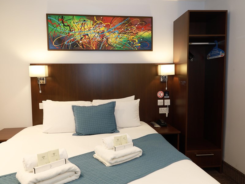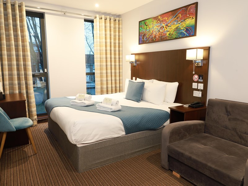 Spacious rooms with a double/king size bed and a sofa bed (please kindly message us if its needed to be used), fitted with white cotton linens and towels. A comfortable room with modern desk workspace, Flat-screen smart TV, hair dryer tea and coffee facilities, and high-speed free wireless internet. It has a walk-in shower with anti-scald protection monsoon overhead and a hand shower. 5 mins walk from LCY airport to hotel.